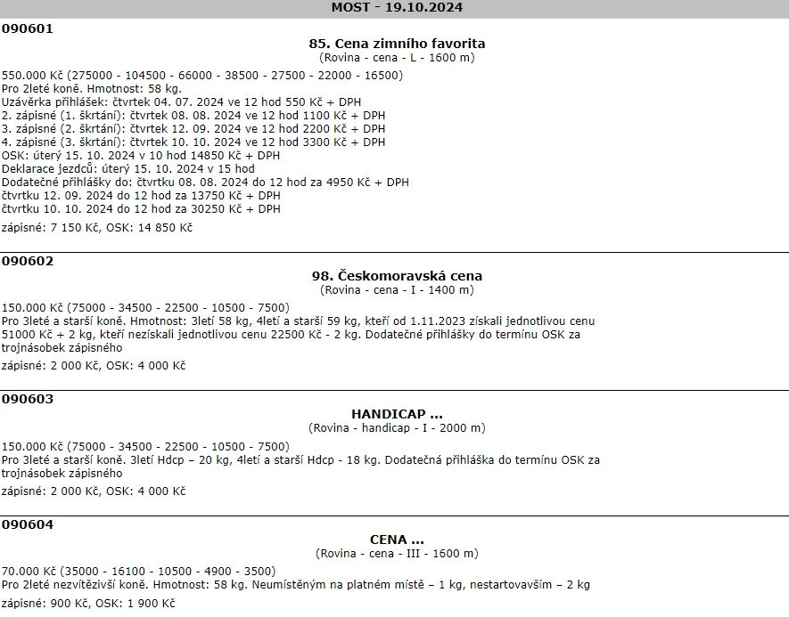 Propozice dostihů 19. 10. 2024